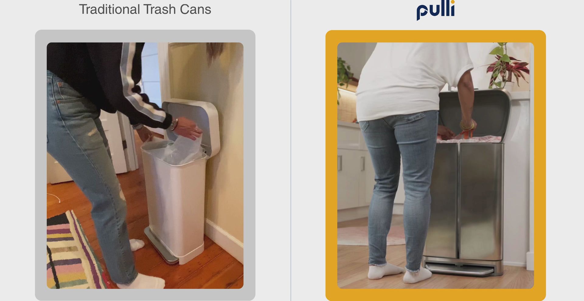 Traditional trash cans make full bags harder to remove. Pulli makes removal smoother and easier.